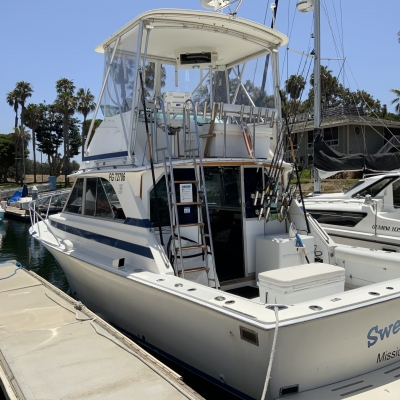 Wanu is a Custom 32’ Marshall flybridge sportfisher powered by a new 250 HP Cummins Turbo Diesel with the latest in digital controls. Wanu was specifically designed and built to fish the coastal waters of Southern California. This boat is the perfect choice for our 1/2 and 3/4 day coastal trips and if the tuna are close to home the Wanu is the excellent choice for offshore fishing. She also has the range to take you as far out as you want…and then some (600 nautical mile range). Wanu is built for comfort and safety. She has a very comfortable cabin to get out of the sun and enjoy your lunch or snack and Captain Chris ensures that every amenity is available to you, including a private restroom (also called the “head”). When you step on board Wanu, her fit and finish demonstrates just how “custom” she really is. Wanu also has a “five-scoop” live bait system to carry that extra bait when needed.